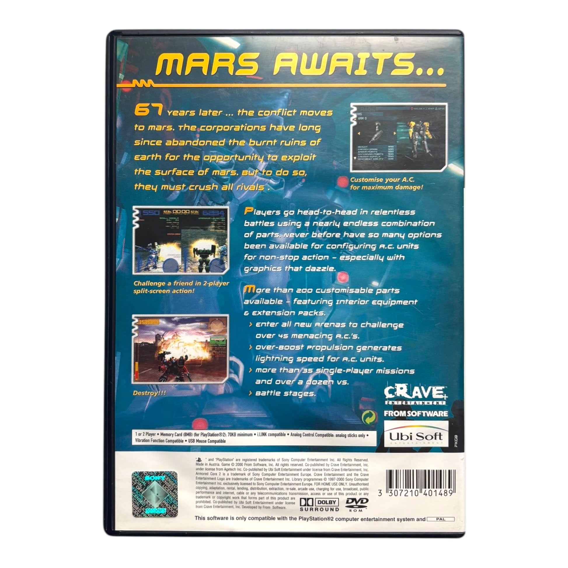 Armored Core 2 is een tactische actiegame waarin je als mechpiloot op Mars missies uitvoert voor rivaliserende corporaties. Je bouwt je eigen robot met een groot aanbod aan onderdelen en wapens, en neemt het op tegen vijanden in snelle, driedimensionale gevechten. Naast het verhaal kun je deelnemen aan de Arena, waar je het opneemt tegen andere top-piloten om geld en prestige te verdienen. Strategisch plannen, warmtebeheer en slimme uitrusting zijn essentieel voor succes.