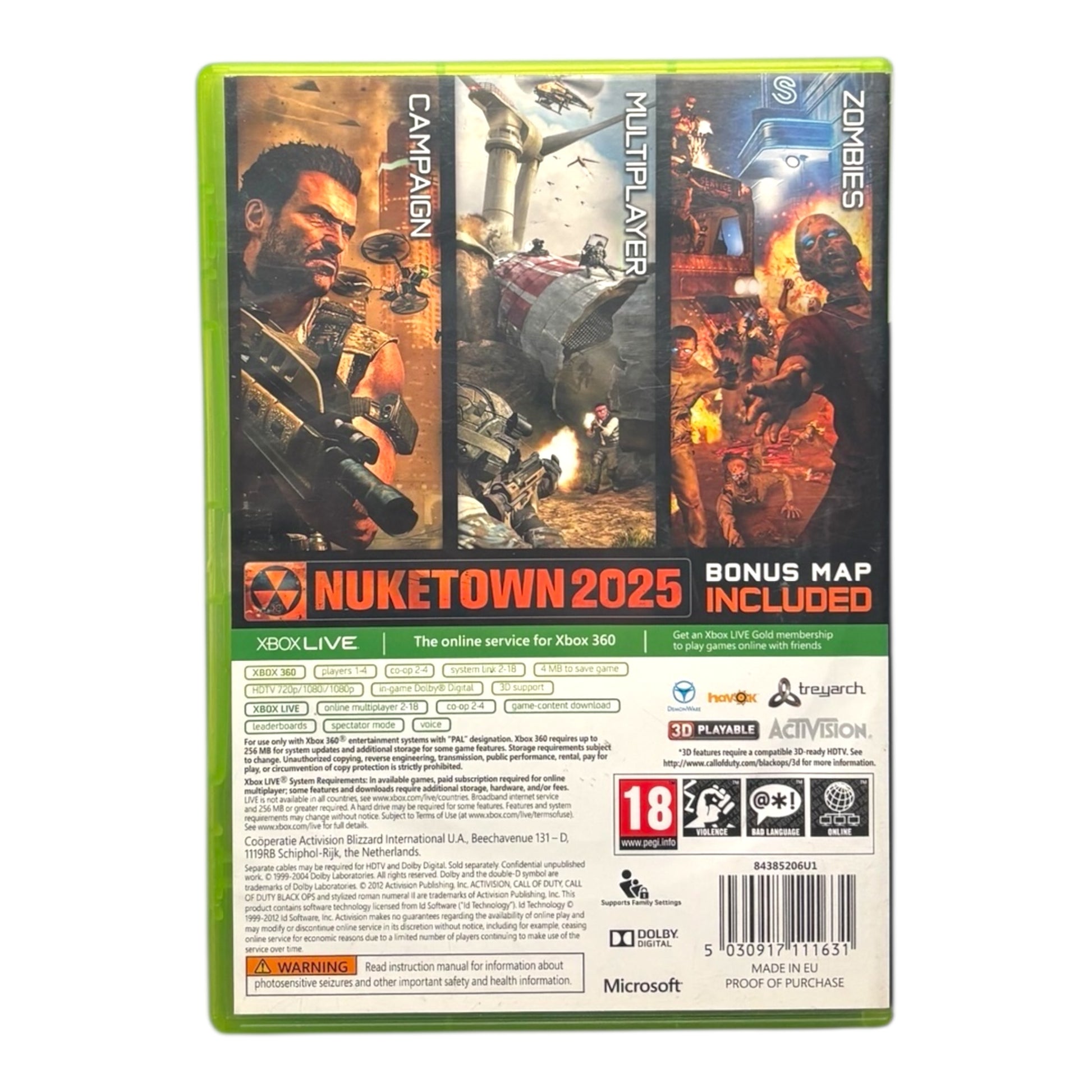 Call of Duty: Black Ops II tilt de franchise naar een nieuw niveau met een meeslepende campagne die zich zowel in het verleden als in de toekomst afspeelt. Spelers ervaren intense gevechten tijdens de Koude Oorlogsjaren en in futuristische conflicten rond het jaar 2025. Met keuzes die de loop van het verhaal beïnvloeden, uitgebreide multiplayer-modi en een vernieuwde Zombies-ervaring, staat Black Ops II bekend als een van de meest veelzijdige delen in de reeks.