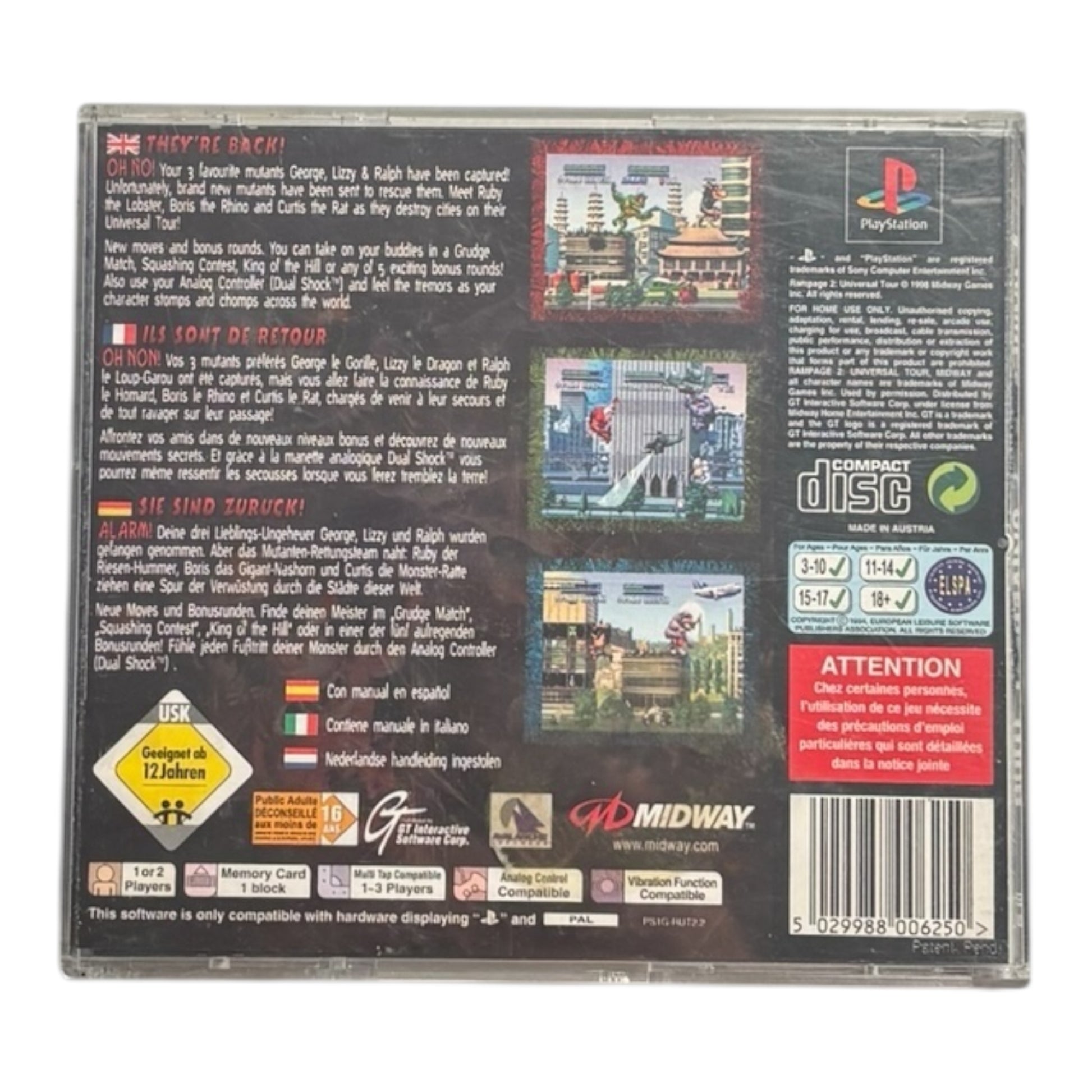 Rampage 2: Universal Tour is het vervolg op de klassieke actiegame waarin spelers gigantische monsters besturen die steden vernietigen. In deze versie kunnen spelers kiezen uit nieuwe monsters en reizen ze de wereld rond om gebouwen, bruggen en voertuigen te verwoesten. Met verbeterde graphics, een groter scala aan wapens en multiplayer-modi biedt de game nog meer chaotisch plezier en destructieve actie.