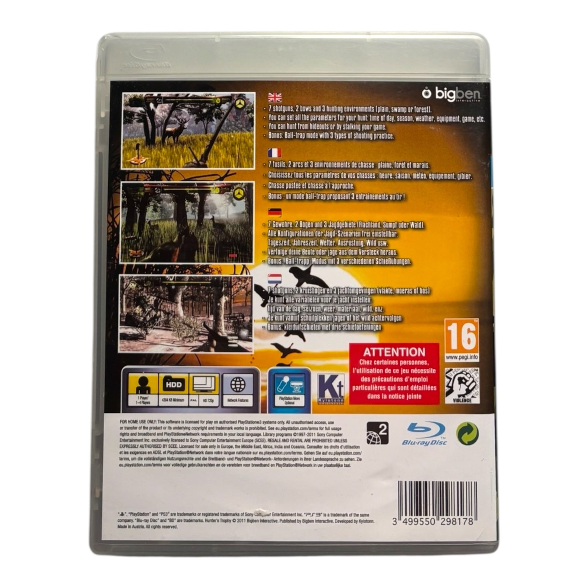 Hunter’s Trophy is een realistische jachtsimulator voor de PlayStation 3 waarin je diverse diersoorten kunt volgen en jagen in uiteenlopende natuurgebieden zoals bossen, moerassen en open vlaktes. Je hebt toegang tot verschillende wapens, waaronder geweren en bogen, en kunt jagen bij verschillende weersomstandigheden en tijden van de dag. De game ondersteunt zowel de traditionele controller als de PlayStation Move voor een meer immersieve ervaring.
