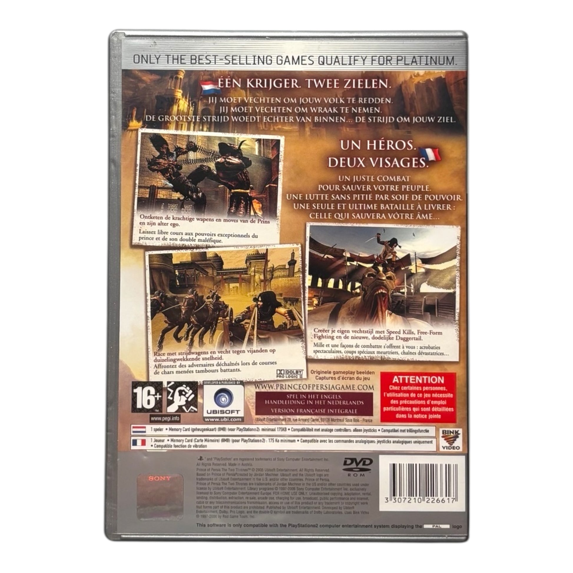 Prince of Persia: The Two Thrones is het derde deel in de populaire Sands of Time-trilogie van Ubisoft. Na de gebeurtenissen in Warrior Within keert de Prins terug naar Babylon, slechts om te ontdekken dat zijn stad is verwoest en zijn geliefde is ontvoerd. Tijdens het verhaal raakt hij besmet door de krachten van de Sands of Time, wat leidt tot het ontstaan van een duistere, gewelddadige alter ego: de Dark Prince. De game combineert platforming, acrobatiek, puzzels en gevechten, met nieuwe mechanics zoals “Speed Kill” en wisselende speelstijlen tussen de twee persoonlijkheden van de Prins.