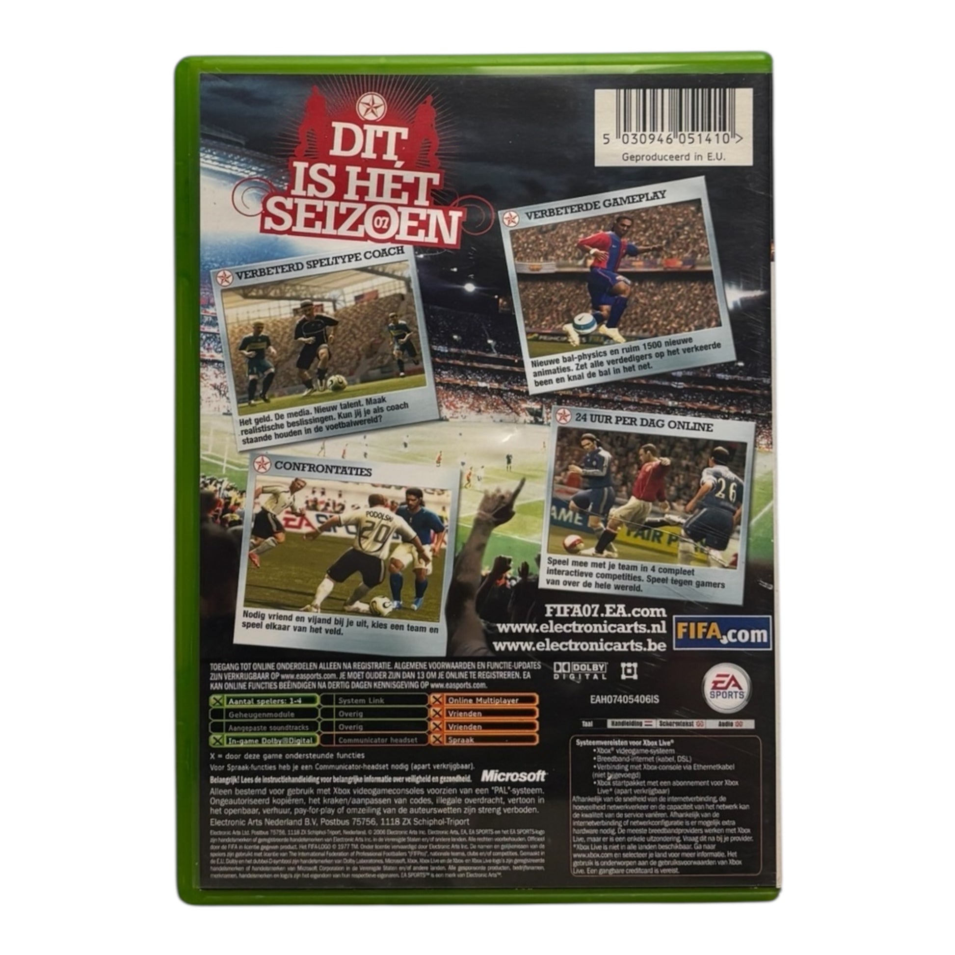FIFA 07 is een voetbalgame ontwikkeld door EA Sports en onderdeel van de langlopende FIFA-reeks. De game biedt realistische wedstrijden, dynamische competities en een vernieuwde carrièremodus waarin je een club meerdere seizoenen kunt managen. FIFA 07 bevat officiële licenties van honderden clubs en competities uit de hele wereld, waardoor spelers kunnen kiezen uit teams uit onder andere de Premier League, La Liga en de Bundesliga. Op de originele Xbox draait FIFA 07 op de bestaande engine, terwijl de Xbox 360-versie een compleet nieuwe basis had.