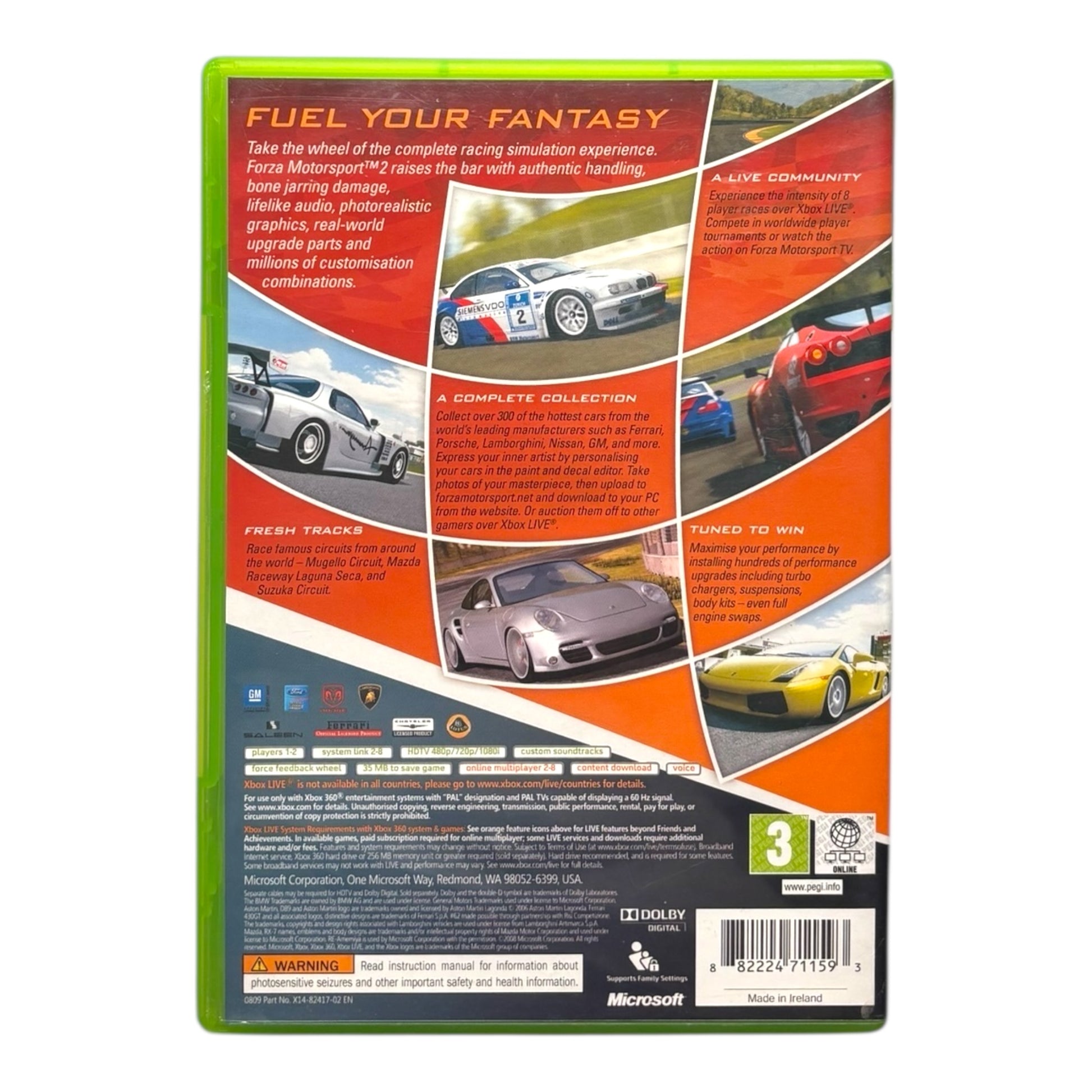 Forza Motorsport 2 is een racesimulatie ontwikkeld door Turn 10 Studios, exclusief voor Xbox 360. Deze opvolger van de originele Forza Motorsport op de eerste Xbox biedt een diepgaande, realistische race-ervaring met meer dan 300 gelicenseerde auto’s van tientallen bekende fabrikanten, waaronder Ferrari, Porsche, BMW, en Lamborghini.