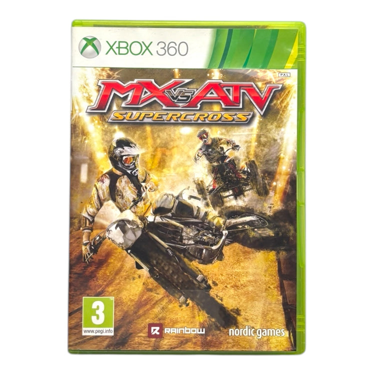 MX vs ATV Supercross is een off-road racespel waarin je op hoge snelheid over modderige circuits raast met motorcrossfietsen (MX) en all-terrain-voertuigen (ATV’s). De game draait om strakke bochten, hoge sprongen en agressieve concurrentie. Met 17 officiële Supercross-tracks, 60 professionele rijders, een carrièremodus en split-screen multiplayer biedt het genoeg actie voor fans van motorsport.