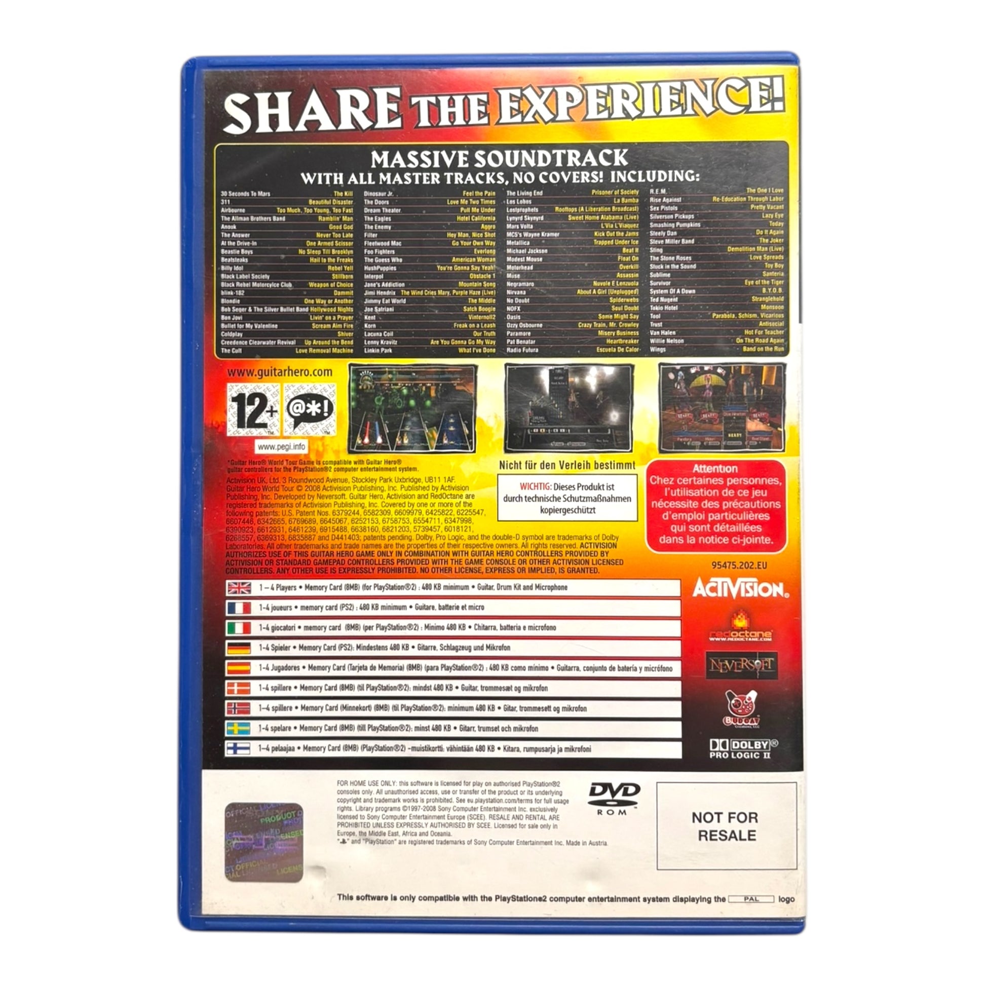 Guitar Hero World Tour brengt de ultieme muziekervaring naar je PlayStation 2. Speel gitaar, bas, drums of zing mee met een uitgebreide set van populaire rock- en popnummers. Met een complete bandervaring, verschillende moeilijkheidsgraden en een creatieve modus om je eigen nummers te maken, is dit dé game voor muziekliefhebbers.