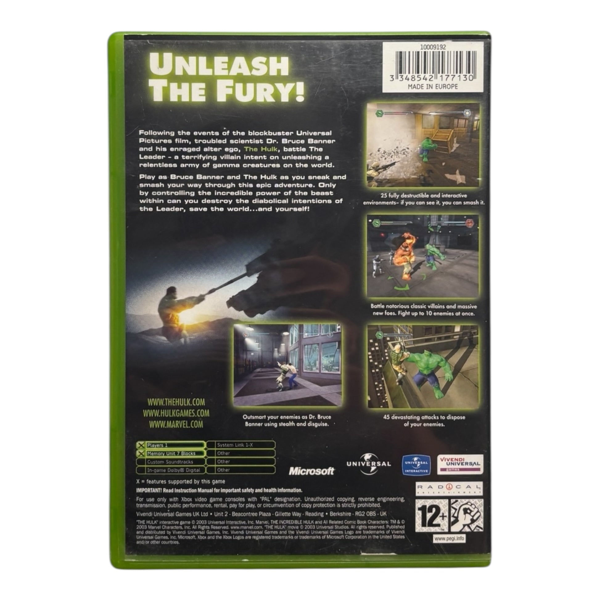 Gebaseerd op de film van Ang Lee uit 2003, is Hulk een third-person actiegame waarin je speelt als zowel Bruce Banner als zijn razende alter ego, de Hulk. Wissel tussen stealth-achtige gameplay als Banner en pure vernietigingskracht als de Hulk terwijl je vecht tegen militaire troepen, genetische experimenten en het kwaad van binnen én buiten. De game biedt een losstaand verhaal dat dienstdoet als spiritueel vervolg op de film.