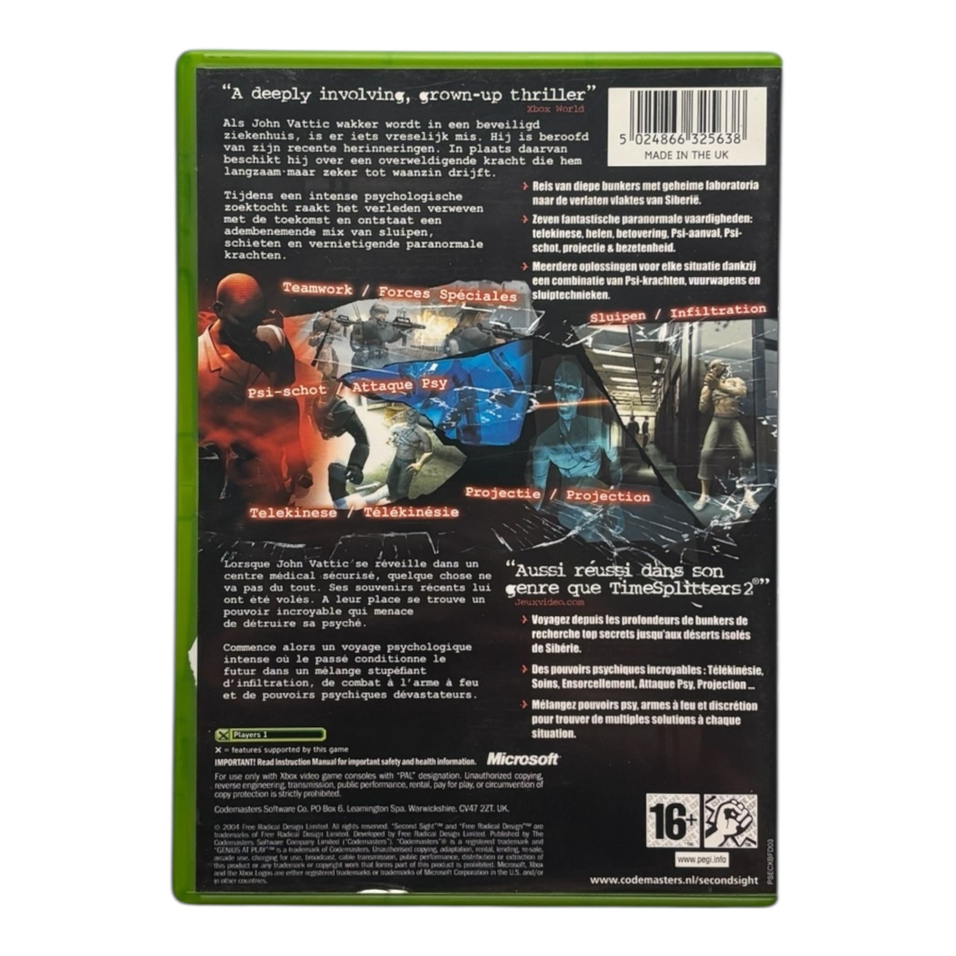 Second Sight is een paranormale actiegame met een intrigerend verhaal en unieke gameplay. Je speelt als John Vattic, een man die wakker wordt in een geheim onderzoekscentrum zonder herinnering aan wie hij is – maar met dodelijke psychische krachten. Terwijl je het mysterie van je verleden ontrafelt, wissel je tussen stealth, schietactie en bovennatuurlijke vaardigheden om je doel te bereiken. De game combineert sciencefiction, spanning en strategie in een memorabele mix.