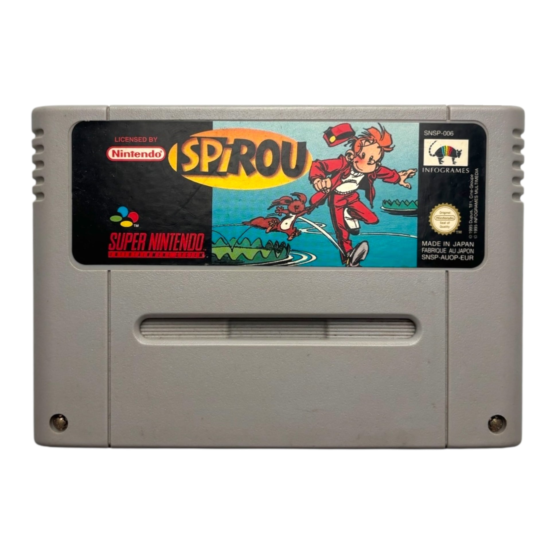 Spirou is een platformspel voor de Super Nintendo Entertainment System, uitgebracht in 1995 en gebaseerd op het gelijknamige Belgische stripfiguur. In het spel neemt de speler de rol van Spirou op zich, die samen met zijn eekhoornvriend Spip een gevaarlijke missie onderneemt om de ontvoerde uitvinder graaf van Champignac te redden. Het spel biedt uitdagende platformactie, strakke besturing en kleurrijke omgevingen geïnspireerd door de stripverhalen.