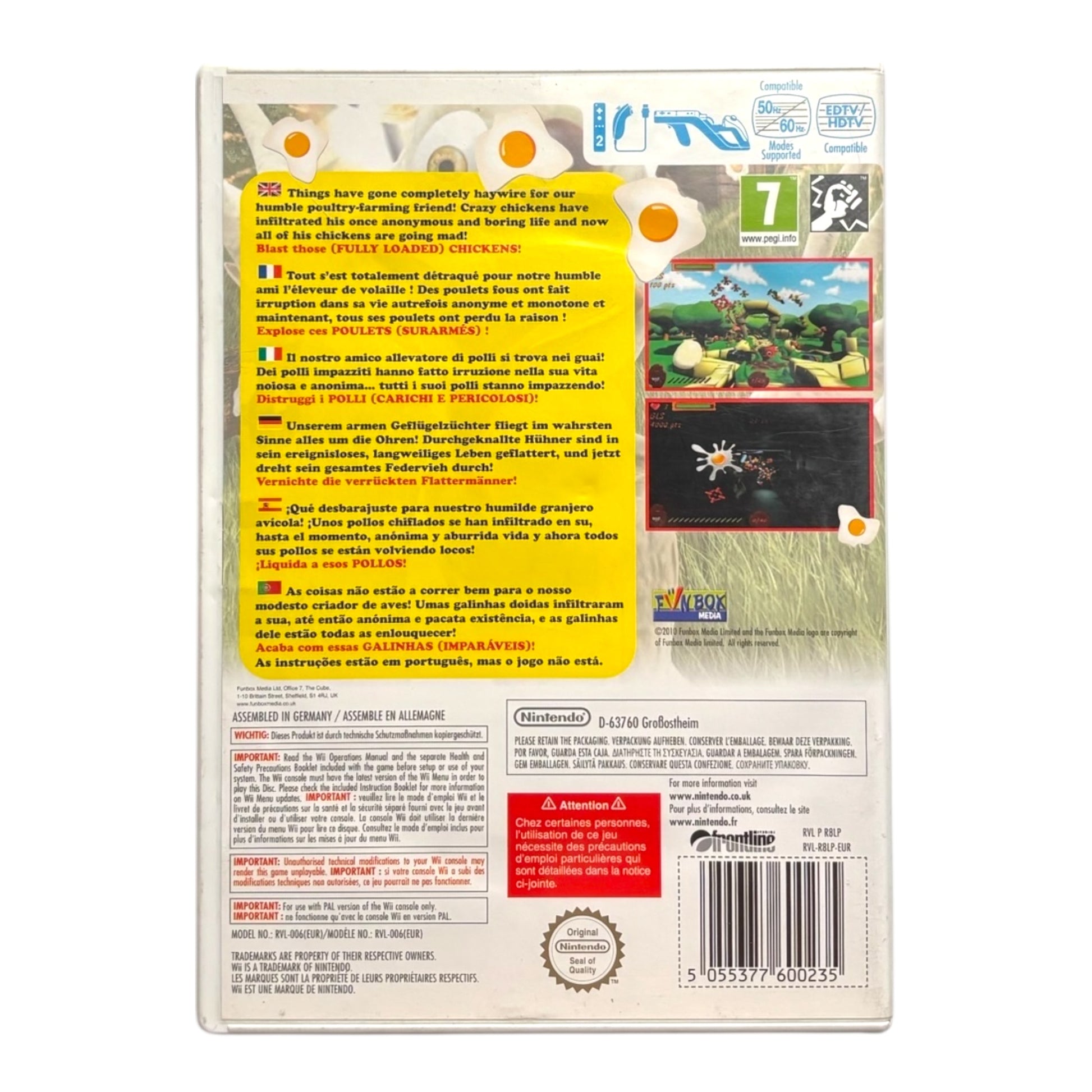 Chicken Blaster ondersteunt coöperatieve multiplayer (1-2 spelers) en is compatibel met de Wii Zapper voor een extra realistische schietervaring.