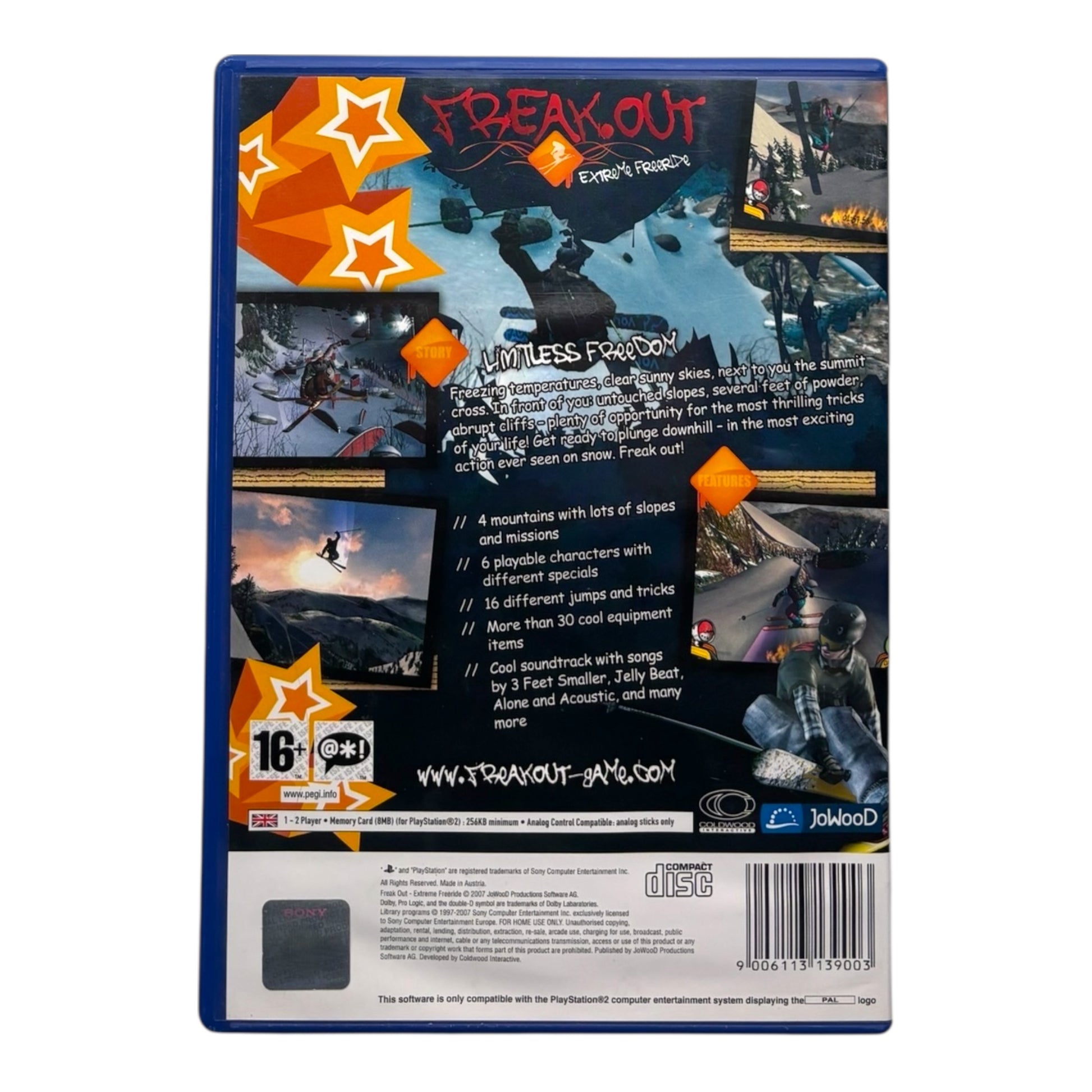 Freakout: Extreme Freeride is een extreme-sports game voor de PlayStation 2 waarin je de vrijheid krijgt om met ski’s van gigantische bergen af te dalen. In plaats van enkel races draait het spel om stunts, snelheid en creativiteit. Je kiest uit meerdere skiërs, elk met hun eigen stijl en vaardigheden, en probeert op open berghellingen zoveel mogelijk tricks en combo’s te maken. Naast losse afdalingen zijn er ook uitdagingen en carrièremodi waarin je nieuwe uitrusting, locaties en tricks vrijspeelt.