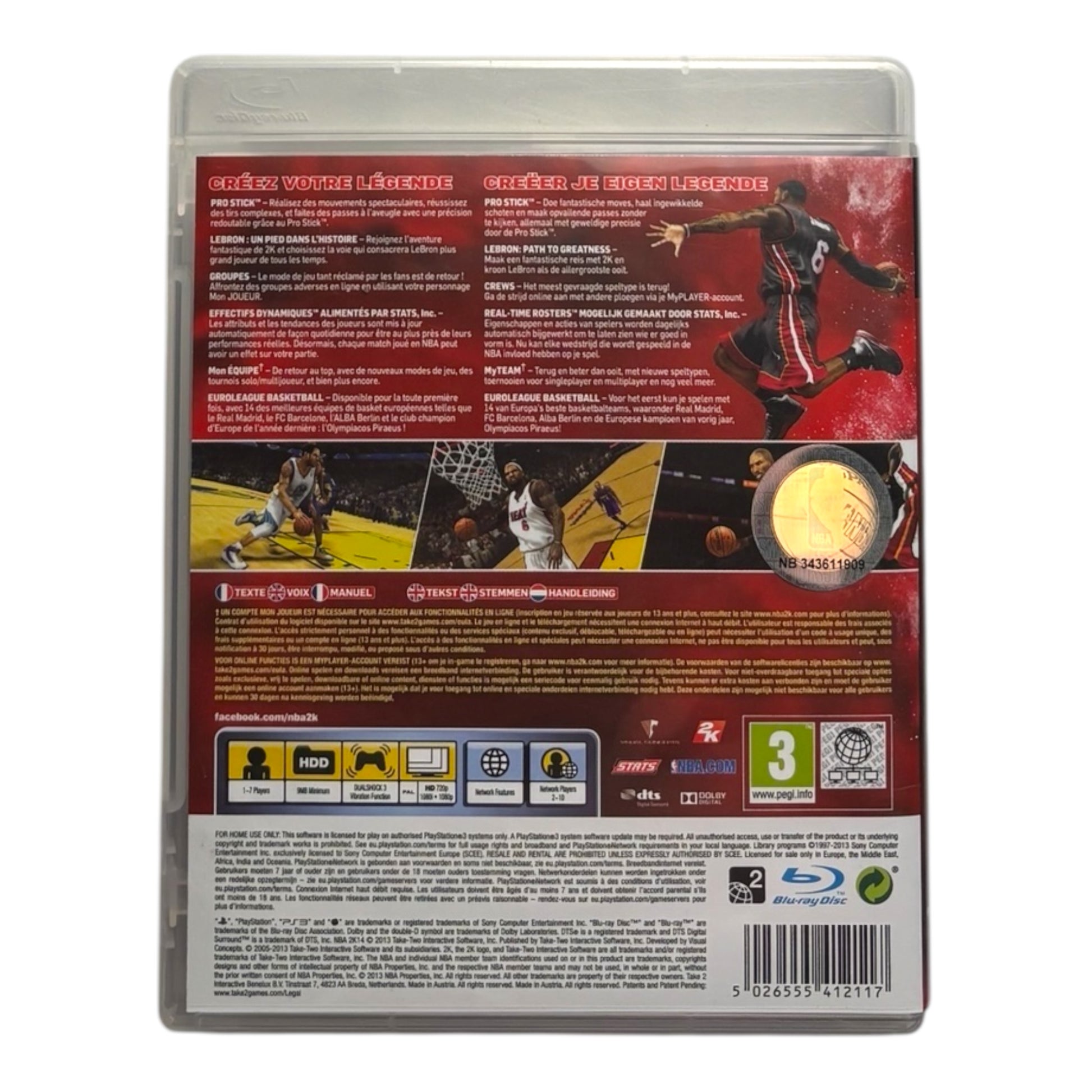 NBA 2K14 is een basketbalsimulatiegame ontwikkeld door Visual Concepts en uitgegeven door 2K Sports. De game biedt een realistische weergave van NBA-wedstrijden met officiële teams, spelers en arena’s. LeBron James was de coverster en fungeerde ook als curator van de soundtrack. Naast de standaard NBA-ervaring introduceerde deze editie de "Path to Greatness"-modus, waarin je LeBron’s toekomst kon herschrijven. Op de PlayStation 3 bleef het spel trouw aan het bekende 2K-systeem met MyCareer, Association en online multiplayer.