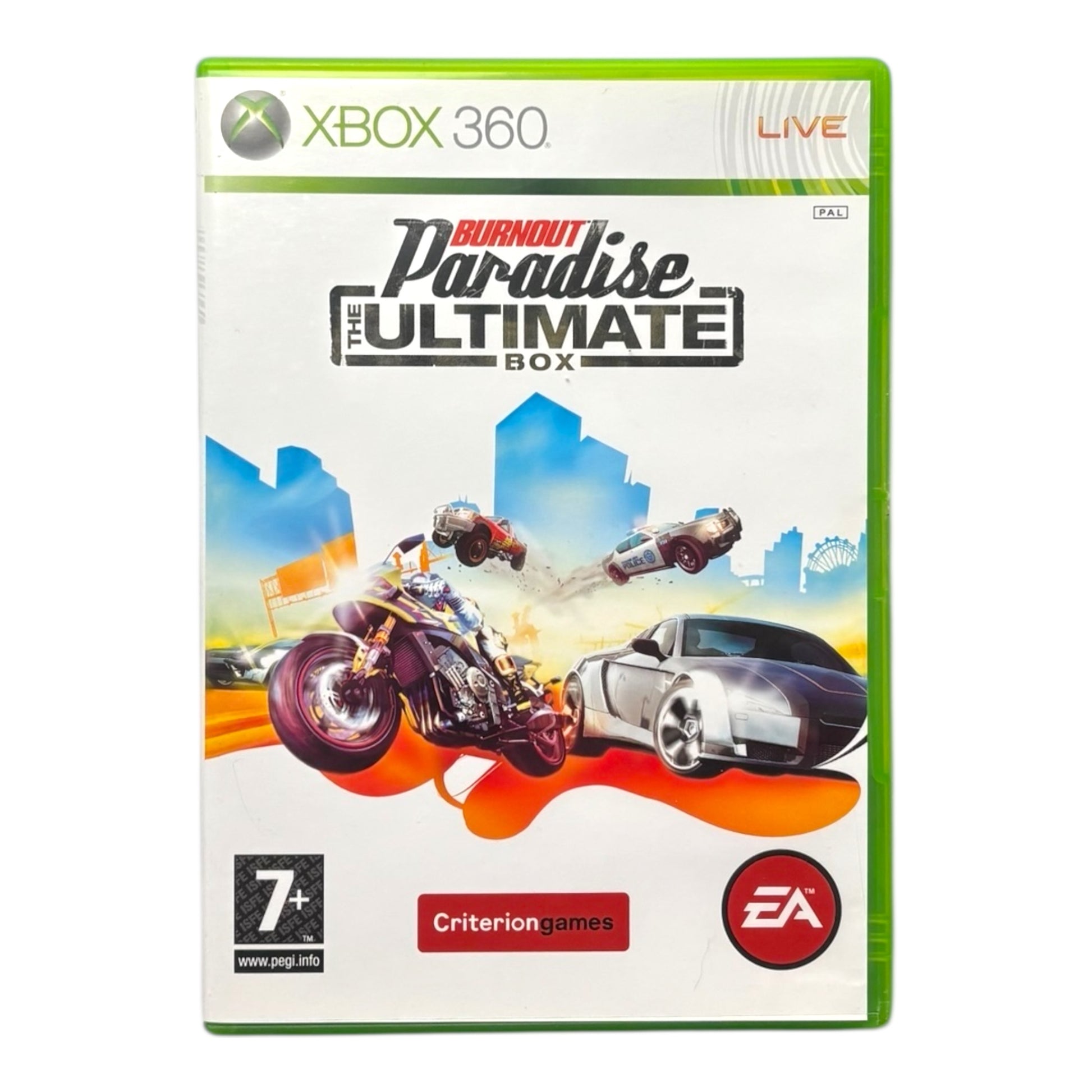 Burnout Paradise: The Ultimate Box levert de ultieme open-wereld race-ervaring op de Xbox 360. Scheur door Paradise City, voer gevaarlijke stunts uit, ram tegenstanders van de weg en ontdek nieuwe voertuigen en uitdagingen in een grote, naadloos verbonden stad. Deze editie bevat naast de originele game ook extra content en verbeteringen, waaronder nieuwe voertuigen, events en de toevoeging van de Party Mode voor lokale multiplayerplezier.