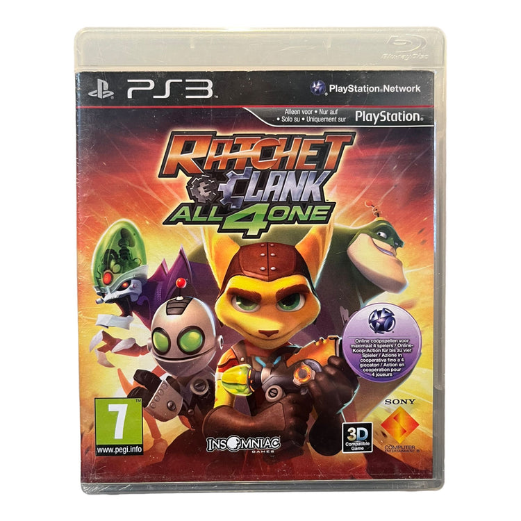 Ratchet & Clank: All 4 One (2011) is een coöperatief avontuur in de geliefde Ratchet & Clank-franchise, ontwikkeld door Insomniac Games. Dit deel is ontworpen met een focus op multiplayer en co-op gameplay, zowel online als lokaal. Spelers kunnen spelen als Ratchet, Clank, Captain Qwark of zelfs Dr. Nefarious, terwijl ze samenwerken om een mysterieus wapen genaamd de Creature Collector te stoppen.