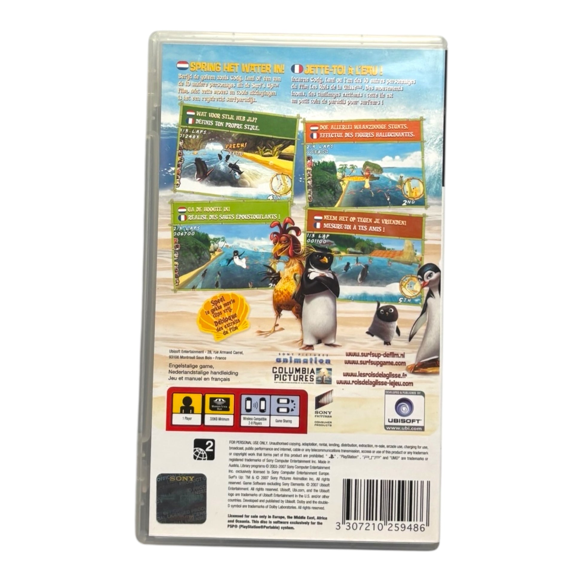 Surf’s Up op de PSP is een actie- en sportgame gebaseerd op de gelijknamige animatiefilm. Je speelt als een van de kleurrijke surfkarakters en neemt deel aan competities op verschillende stranden over de hele wereld. Het spel combineert surfen met tricks, snelheid en het verzamelen van punten voor spectaculaire combo’s. Daarnaast zijn er minigames en uitdagingen die extra beloningen opleveren en je surfvaardigheden verbeteren.