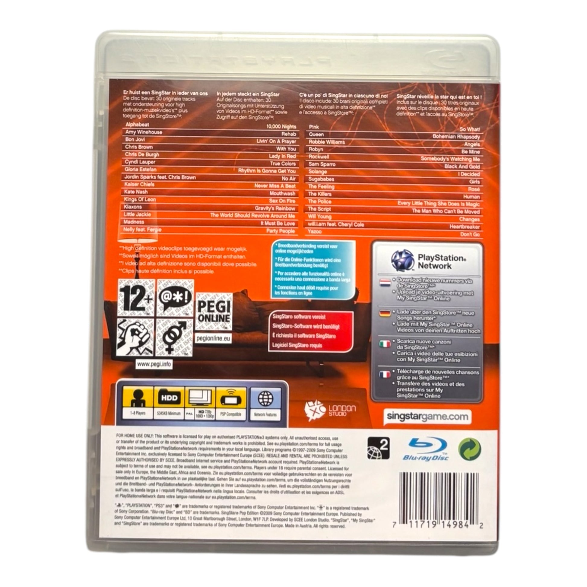 SingStar Pop Edition is een editie van de populaire karaoke‑reeks voor PlayStation 3, met een speciale focus op popmuziek. Spelers zingen mee met bekende pophits, krijgen realtime feedback op toonhoogte en ritme, en kunnen nummers solo of in duetten uitvoeren. Dankzij de intuïtieve interface is het gemakkelijk om direct in te springen en plezier te maken, zelfs zonder voorkennis van karaoke‑games.