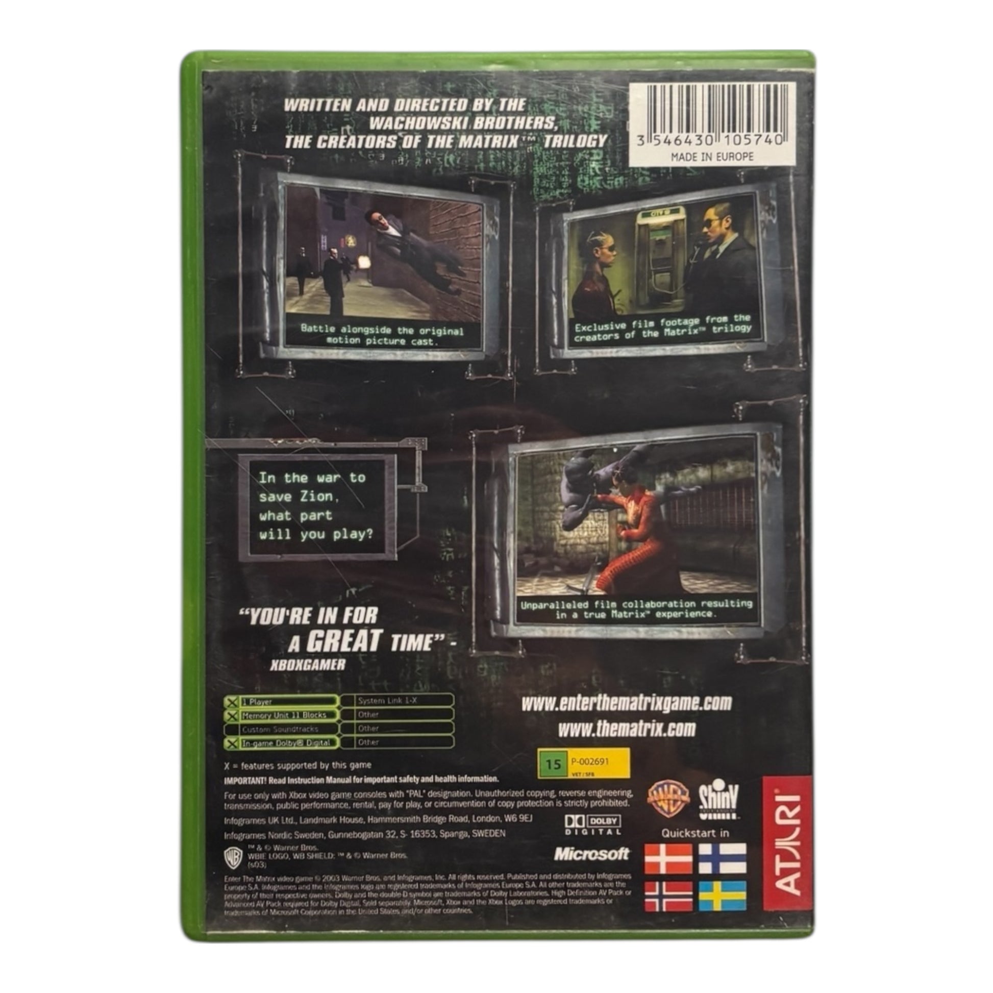 Enter the Matrix is een third-person actiegame die zich afspeelt in het universum van de beroemde Matrix-films. De game laat spelers in de huid kruipen van Niobe en Ghost, twee personages die een cruciale rol spelen in de strijd tegen de machines. Met een mix van intense vuurgevechten, martial arts en spectaculaire "bullet time"-actie beleef je een verhaal dat direct aansluit op de gebeurtenissen uit The Matrix Reloaded. De game combineert filmische scènes met interactieve gameplay, waardoor het voelt alsof je zelf deel uitmaakt van de film.